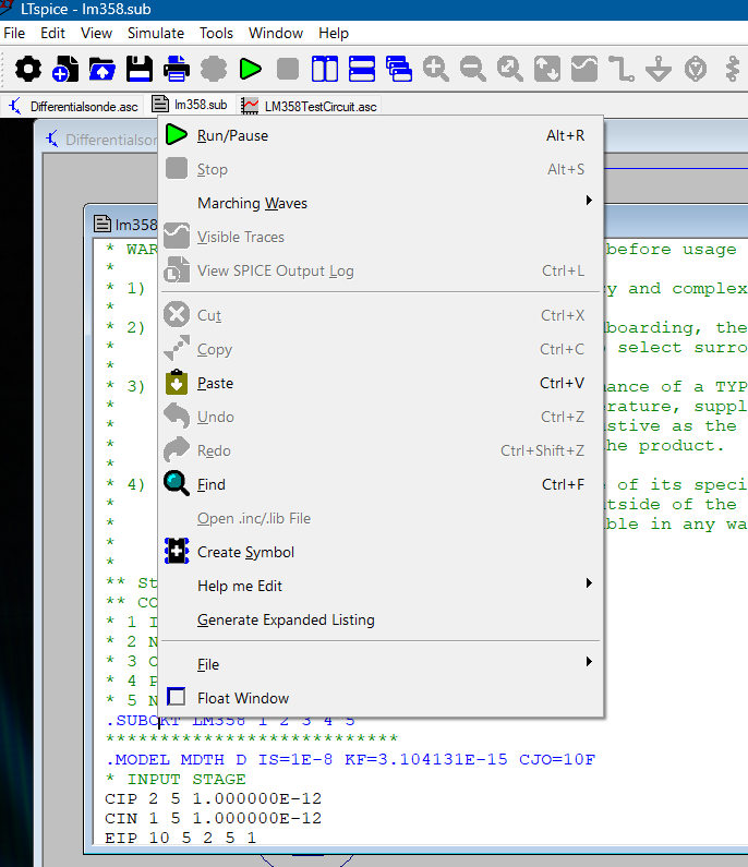Es gibt viele Methoden wie man Komponenten zu LTspice hinzufügt. Ich habe die Methode gewählt, wo die neue Komponente dann in der Bibliothek zur Verfügung steht. Das Vorgehen wird in der Hilfe von LTspice empfohlen (Suche in der Hilfe nach „Third-party Models“, aber von einigen Benutzer auf diversen Foren nicht unbedingt. Am besten bildet ihr euch selber eine Meinung.