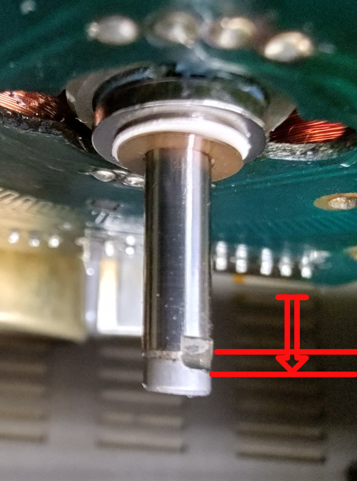 Zum Testen legte ich eine 0.8mm Unterlagscheibe drunter. Der Magnet streifte nun nicht mehr. Aber der Motor lief immer noch etwas