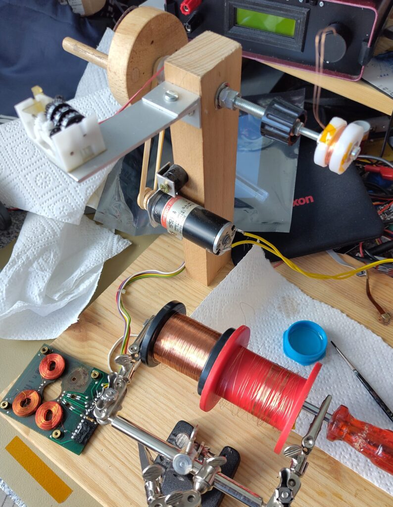 Nun ging es ans wickeln. Schon vor langer Zeit hatte ich mir eine provisorische Wickelmaschine gebaut, die ich nun wieder gut gebrauchen konnte.